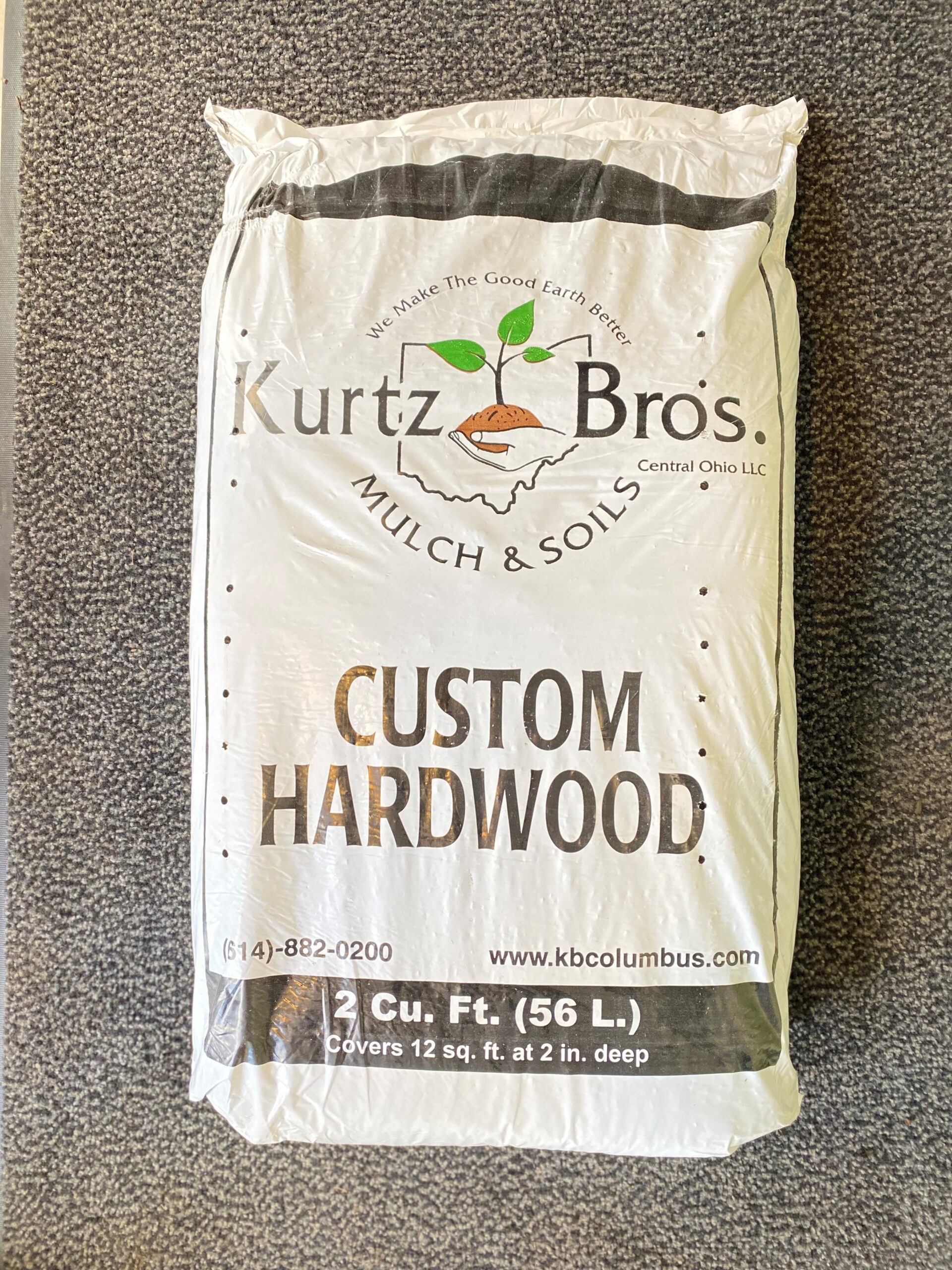 Our Custom Hardwood in 2 cubic foot bag. This is natural brown, non dyed mulch. The dark brown color allows for an aesthetically pleasing natural groundcover.